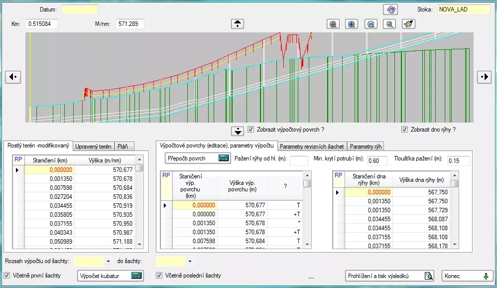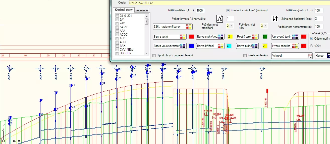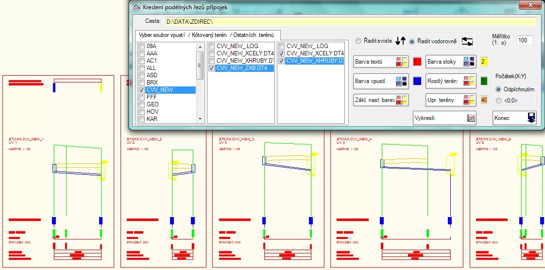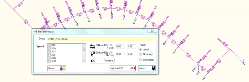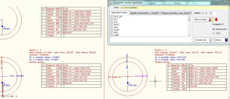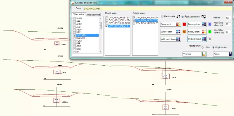 Vedle numerických výsledků je možné vytvářet grafické přílohy typu situace, podélný profil, příčné řezy, skladba šachet, úplný model ve 3D a další související přílohy, které lze vykreslit přímo na obrazovku nebo v externím grafickém prostředí (AutoCAD nebo ZWCAD).